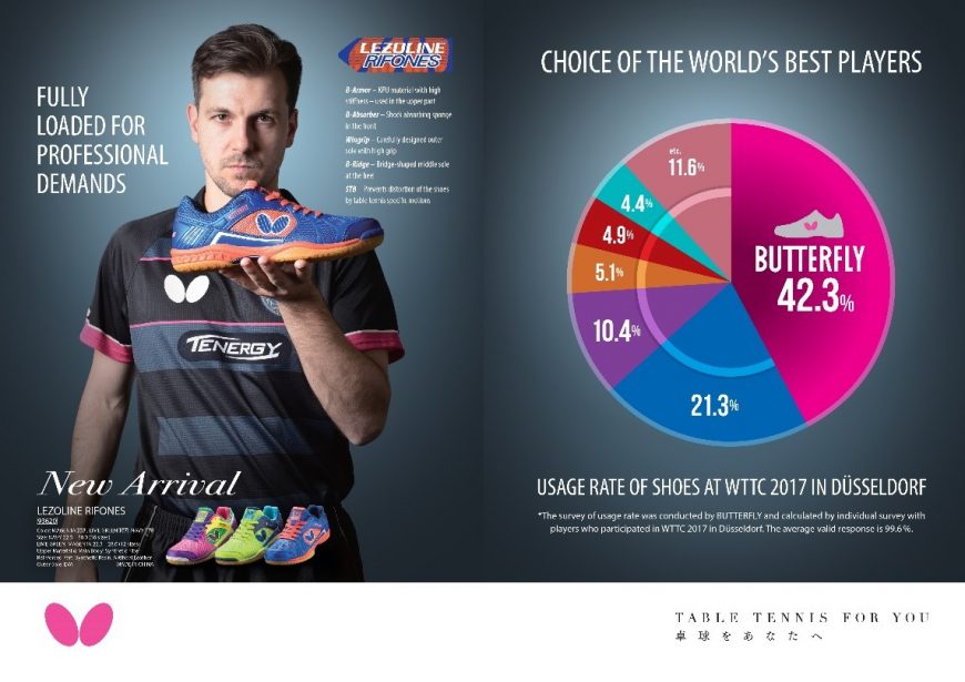 สถิติการใช้รองเท้าในรายการแข่งขันปิงปองชิงแชมป์โลก WTTC 2017 ณ เมืองดุสเซลดอร์ฟ ประเทศเยอรมนี