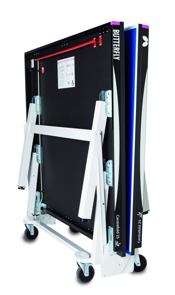 The Butterfly Centrefold 25 rollaway is our best selling ITTF-approved table tennis table. Easy-fold design