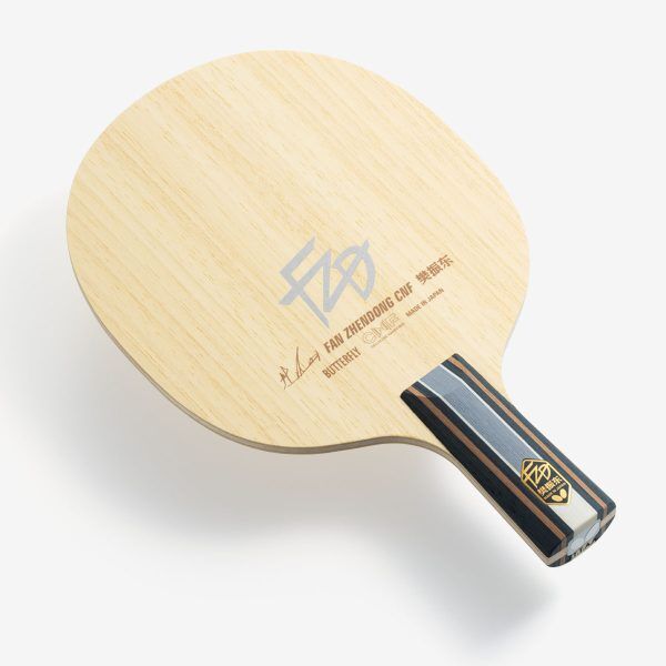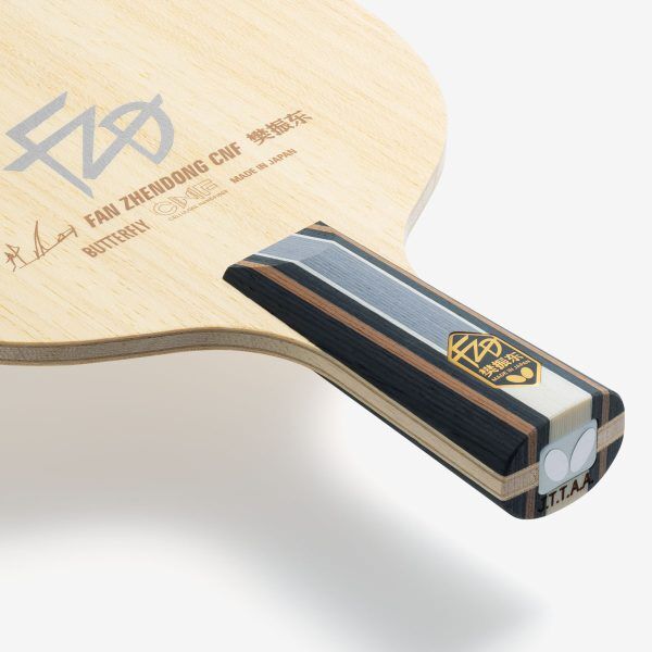 เซลลูโลสนาโนไฟเบอร์; เส้นใยประดิษฐ์นาโนเทคโนโลยีทำให้ไม้นี้มีความเร็วสูงและมีคุณสมบัติการสั่นสะเทือนที่ต่ำกว่า ไม้ยังให้ความรู้สึกถึงเวลาการหยุดนิ่งนานด้วยคุณสมบัติการสั่นไหวที่ต่ำ การออกแบบโดยรวมได้รับแรงบันดาลใจจากการเล่นที่เน้นการโจมตีของ Fan Zhendong ด้วยจังหวะที่รวดเร็ว เส้นตรงถูกใช้บนด้ามเพื่อแสดงทัศนคติของ Fan Zhendong ซึ่งมีเป้าหมายที่จะก้าวไปข้างหน้าเสมอ