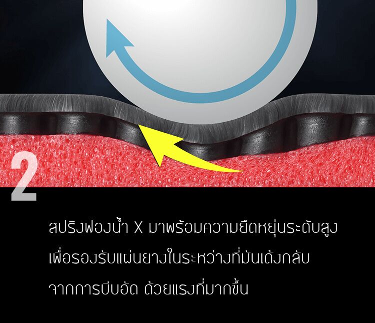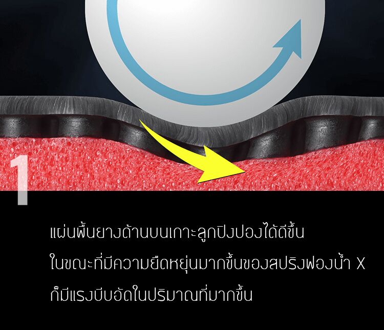 By combining Spring Sponge X with a new rubber pad. It’s great for holding onto the ball.