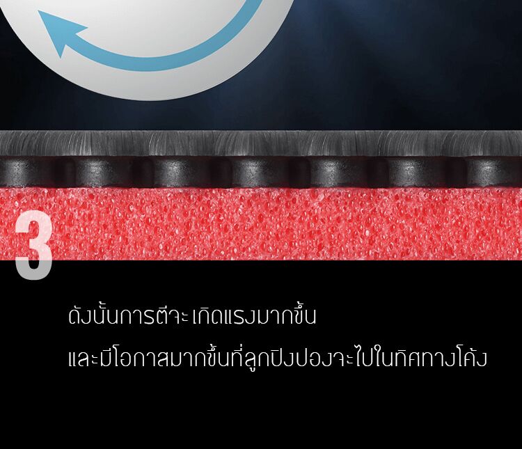 The ease of creating arcs in topspin play has been improved. Stable and powerful hits can be made.