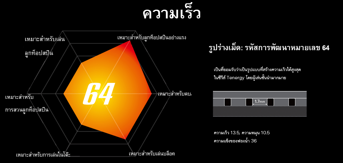 Tenergy ทำให้สามารถเรียนรู้เทคนิคง่ายขึ้นซึ่งเมื่อก่อนเคยถือว่าเป็นเรื่องยากเช่นการตวัดข้อมือและลูกเคาน์เตอร์ท็อปปิน นับตั้งแต่วันที่เปิดตัว ประสิทธิภาพการหมุนและความเร็วสูงเป็นที่ต้องการอย่างมากของนักกีฬาปิงปอง เพื่อสนับสนุนเนื่องด้วยการพัฒนาของผู้เล่นจากหลากหลายระดับ และหลากหลายทักษ บัตเตอร์ฟลายได้เพิ่มจำนวนตัวเลือกของ Tenergy ตลอดหลายปีที่ผ่านมา ผ่านการวิจัยและพัฒนาอย่างพิถีพิถันเป็นรูปทรงของเม็ดและความแข็งของฟองน้ำ